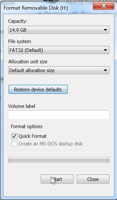 قم بتركيب الفلاش ميموري في الحاسوب، ومن ثم قم بفورماته بصيغة FAT 32 كمت في الصوّر.